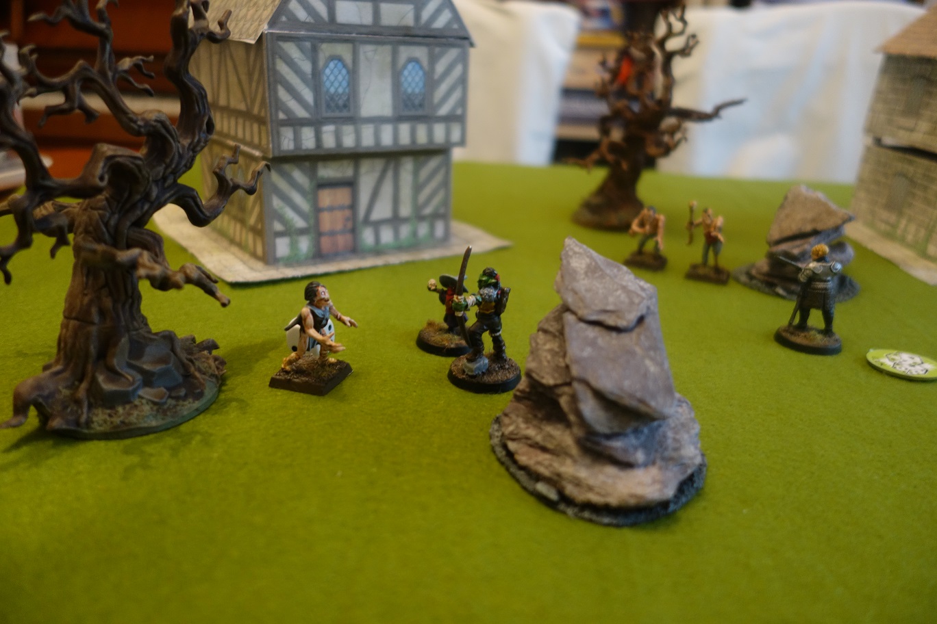 The scenario started pretty well, with the group splitting up to investigate and picking off Zombies as they did so. A sudden surge of Zombies left Shae dangerously isolated, but she held them off with her bow until help arrived in the form of Merinda and Norko.